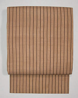 芭蕉布といえば、真夏だけの物と思いがちですが、南国では、通年着用していました。 心を和ませるやさしい色に細い縞。 見ているだけで穏やかな気持ちにさせてくれるような素敵な芭蕉布の名古屋帯です。