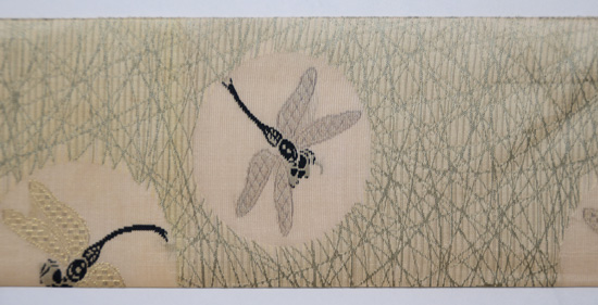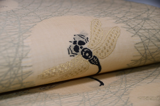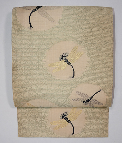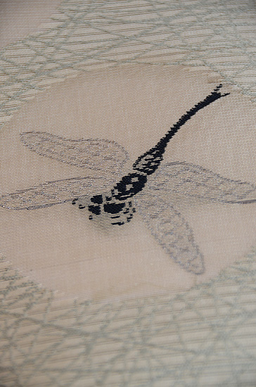 ぽっぽっと丸く、蜻蛉たちが光を放つようです。 翅の柄がそれぞれ違うのも楽しい。 上品な色味で夏らしくお召いただけます。