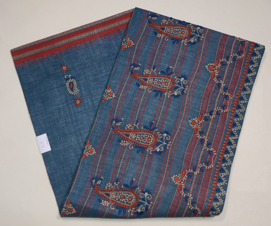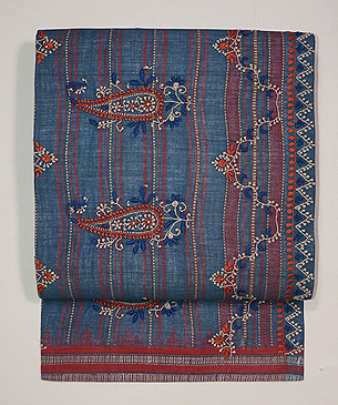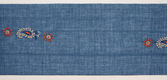 チカン刺繍木綿地ブルー名古屋帯 ご売約済 帯19-1-20