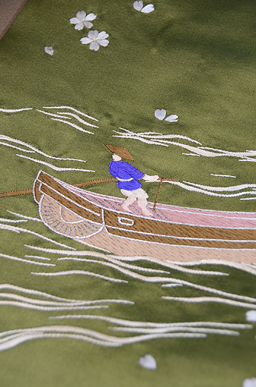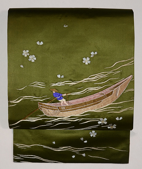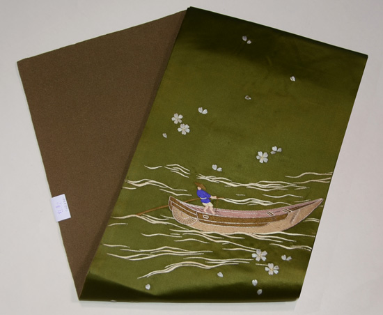 春の川面を漕ぐの図名古屋帯 ご売約済 帯19-1-29