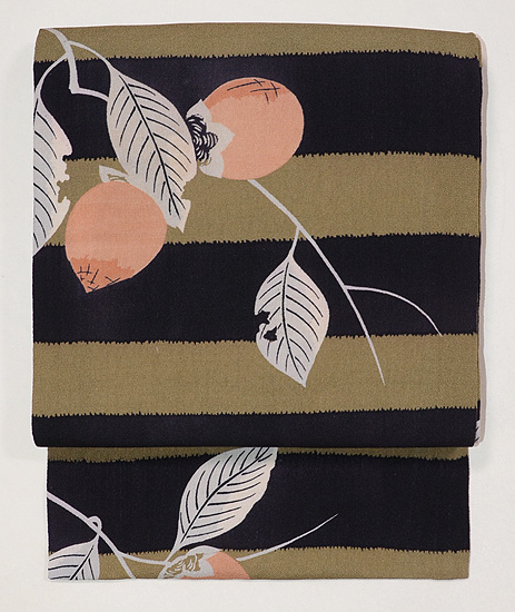 横段に筆柿の染め名古屋帯 ご売約済 帯19-10-22