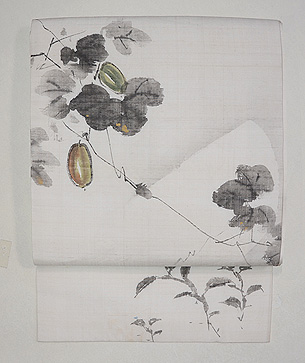 とても闊達な筆の運びが気持ちの良い帯です。 誰もが大好きな、小さいけれど秋の象徴とも言えるカラスウリ。 お着物通の着こなしが楽しめそうです。
