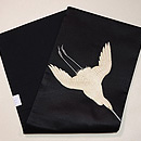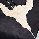 正絹黒繻子地に鷺が刺繍された名古屋帯。 長い嘴と足を持ち、すらりと飛翔する姿が凛とした印象を与えます。 繊細な手刺繍、光沢をもつ絹糸が美しく立体感があります。 黒地なので、着物の色を選ばずにお使い頂けます。