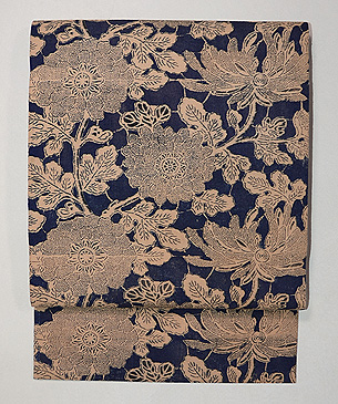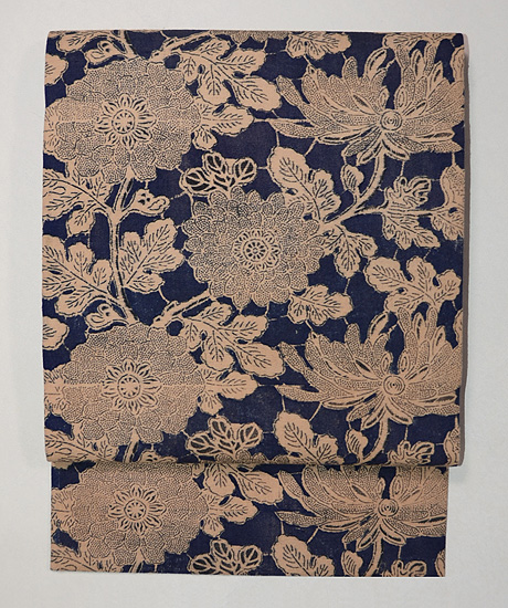 菊文様和更紗の名古屋帯 帯裏 菊文様和更紗の名古屋帯 前柄 菊文様和更紗の名古屋帯 質感・風合