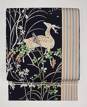 鹿の刺繍名古屋帯 帯裏 鹿の刺繍名古屋帯 前柄 鹿の刺繍名古屋帯 質感・風合