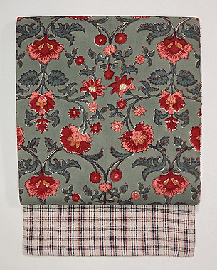 和更紗に紬の切り継ぎ名古屋帯 帯裏 和更紗に紬の切り継ぎ名古屋帯 前柄 和更紗に紬の切り継ぎ名古屋帯 質感・風合