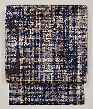 まるでキャンバスに油絵の具でやたら格子を描いたような紬の名古屋帯。