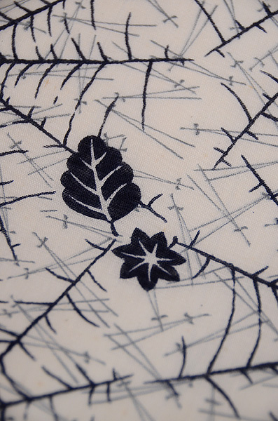 これだけ巣を張り巡らしていたら、クモも美味しいものにありつけそうですね。 型染めの擦り小紋で、着物から作りましたが、涼しげな装いが楽しめそうです。