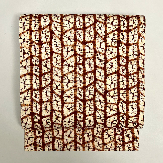 着尺から帯にしてみました。 白地が多く明るい雰囲気なので、春からの季節に、お役に立つのではないでしょうか。