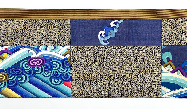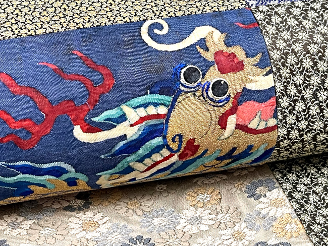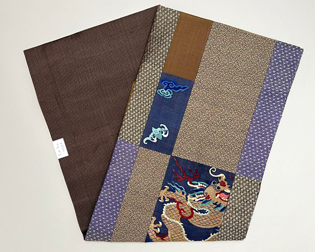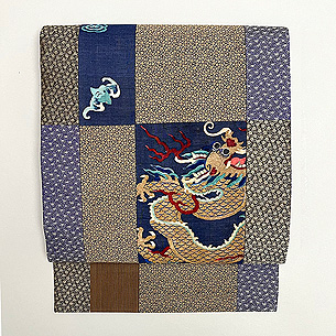 中国朝服上り龍文様 綴れ断片継ぎ名古屋帯 帯22-11-27 ご売約済