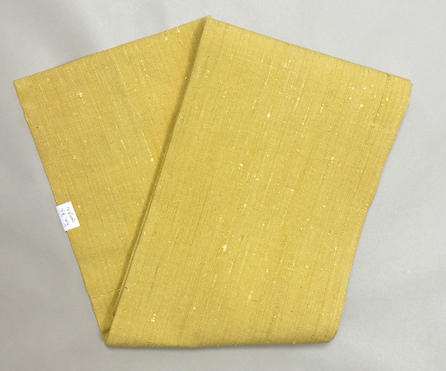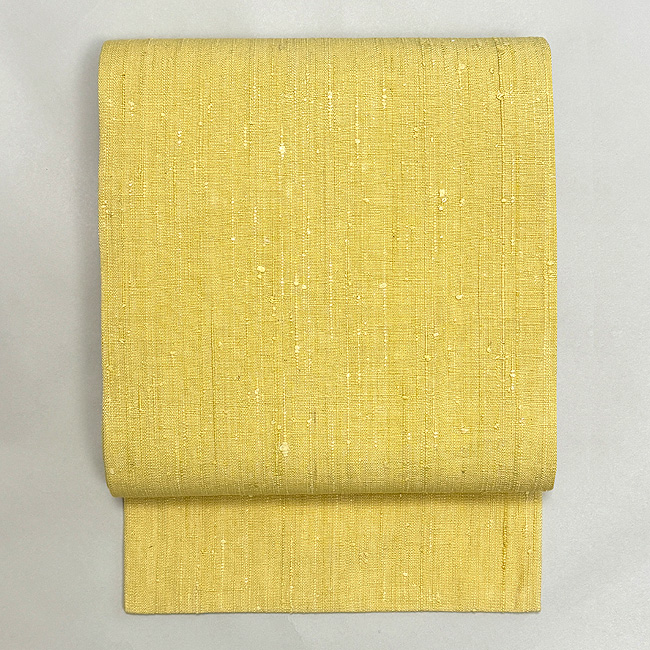 浦野理一作 縦節紬レモンイエローの名古屋帯 帯24-01-27 ご売約済