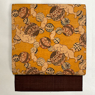 手毬に仔犬文の和更紗名古屋帯 ご売約済帯24-01-30