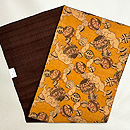 和更紗の味を充分に堪能いただける素朴でかわいい図柄の名古屋帯です。 共濃いの紬をあしらって、少しメリハリをつけました。
