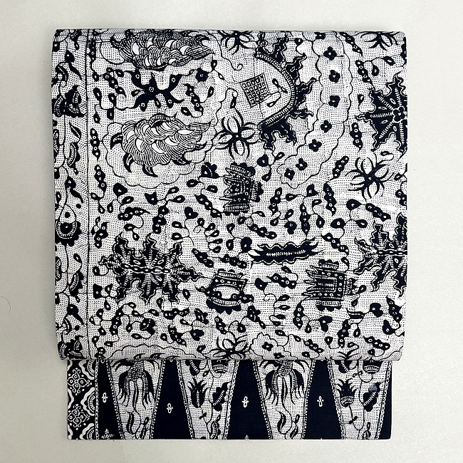インドネシア白地バティックの名古屋帯 帯24-02-03 ご売約済