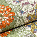 短冊に切り取った中に大きなお花が織り込まれた膨れ織りの名古屋帯です。