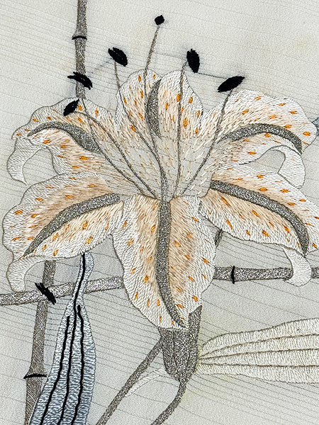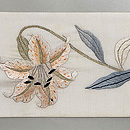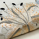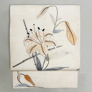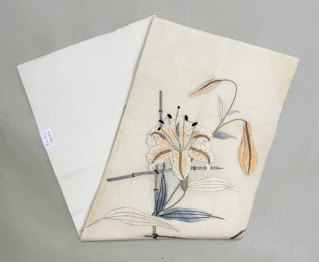 白絽地ユリの刺繍名古屋帯 ご売約済帯24-05-16