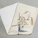 白いユリの花ががまがきにもたれて大きく咲いています。 作られた当初の、黒地の明石縮とかにあわせたイメージが沸々と湧いてきますね。