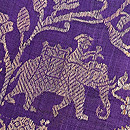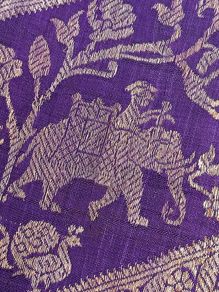 こちらもベナレスシルクのサリーでした。 大先輩の友人が、30年前にインドで買い求めたものです。 マハラジャの狩の様子が織り出されています。 細いモールの金銀糸が剥がれて、渋い色合いを出しています。 状態の良い所は、眩しくて使いませんでした。