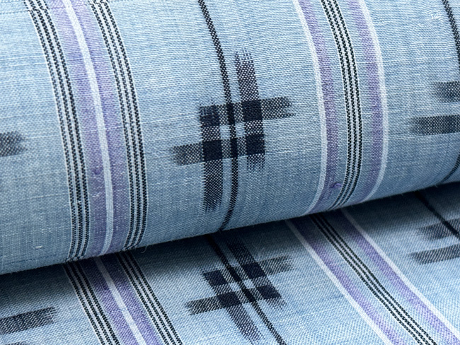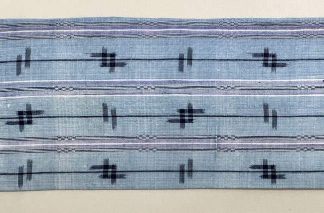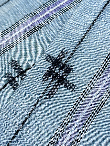 縞の中には繊細な色と模様が詰まっていて、無地部分も暈しや滲みがあり微妙なニュアンスを醸しています。 絣柄も又、はかなくかわいいです。