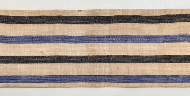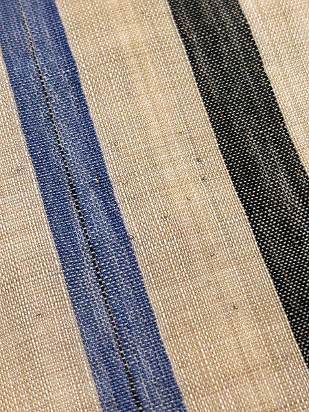 経糸に黒と群青が織り込まれています。スッキリとした大人の香り、都会的センスがひかるこの縞建を、竹富のどんな方が織られたのだろうかと気になって仕方ありません。 質感は柔らかいです。