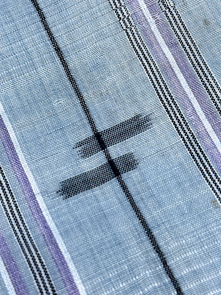 細い3本線が微かにゆらめいて、よく見ると絽織りになっています。 やさしく上品なデザインで、昭和中期の宮古上布のようです。