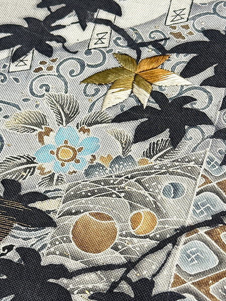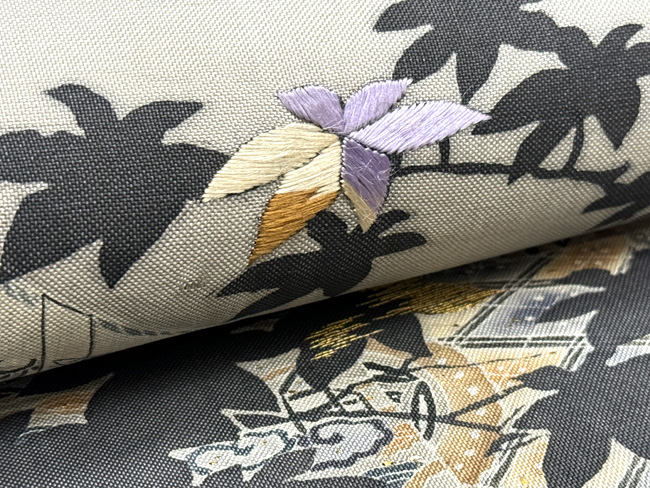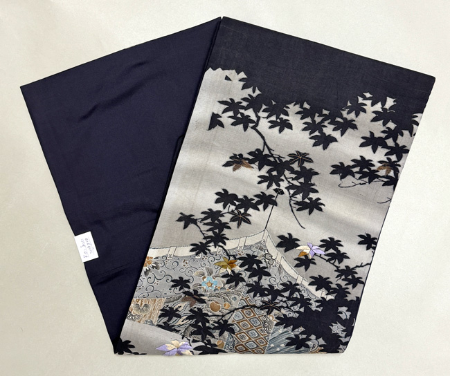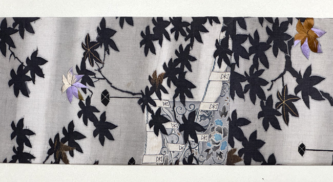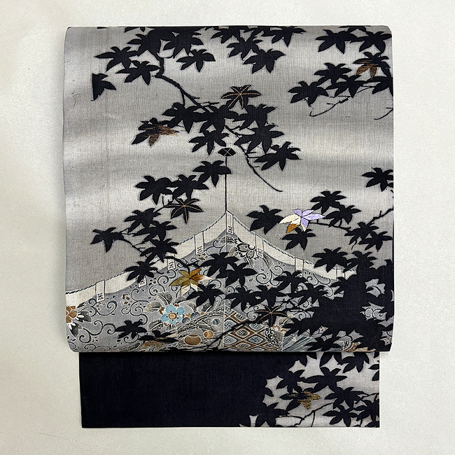 紅葉狩り文様の名古屋帯 帯裏 紅葉狩り文様の名古屋帯 前柄 紅葉狩り文様の名古屋帯 質感・風合