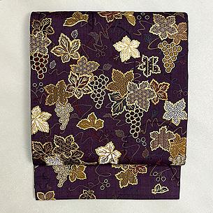 葡萄文の刺繍袋帯 帯24-10-13 ご売約済 長さ:1丈1尺3寸(429.4約cm) 帯巾:8寸2分(約31.2cm)