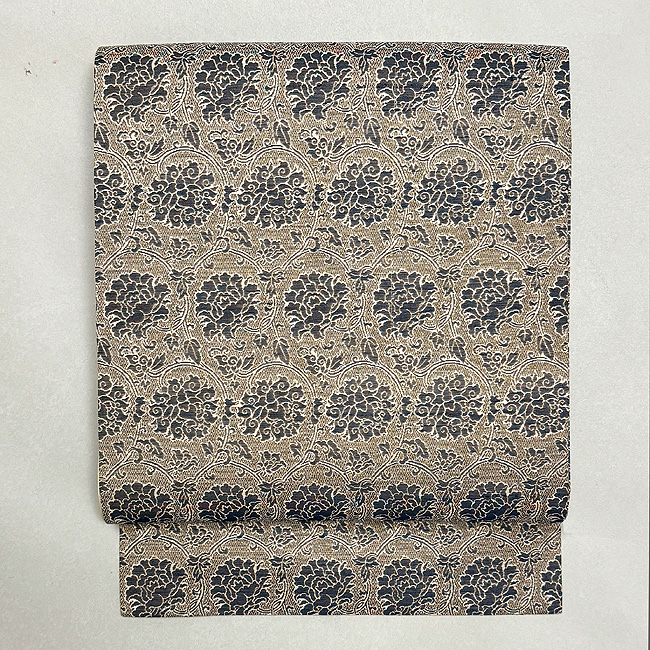 牡丹唐草文浮織りの名古屋帯 帯24-10-62 ご売約済 長さ:9尺6寸(約364.8cm) 帯巾:8寸2分(約31.2cm)