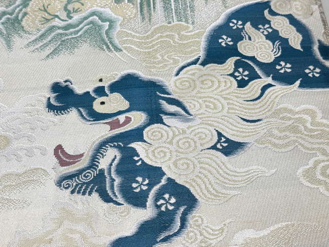 流水に唐獅子文様の名古屋帯 ご売約済帯24-10-65