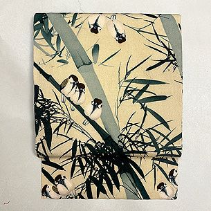 竹雀の縮緬名古屋帯 帯24-10-71 ご売約済