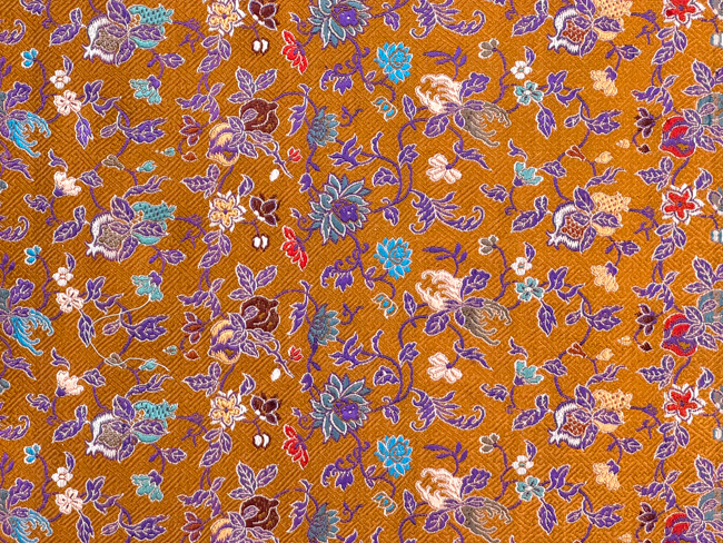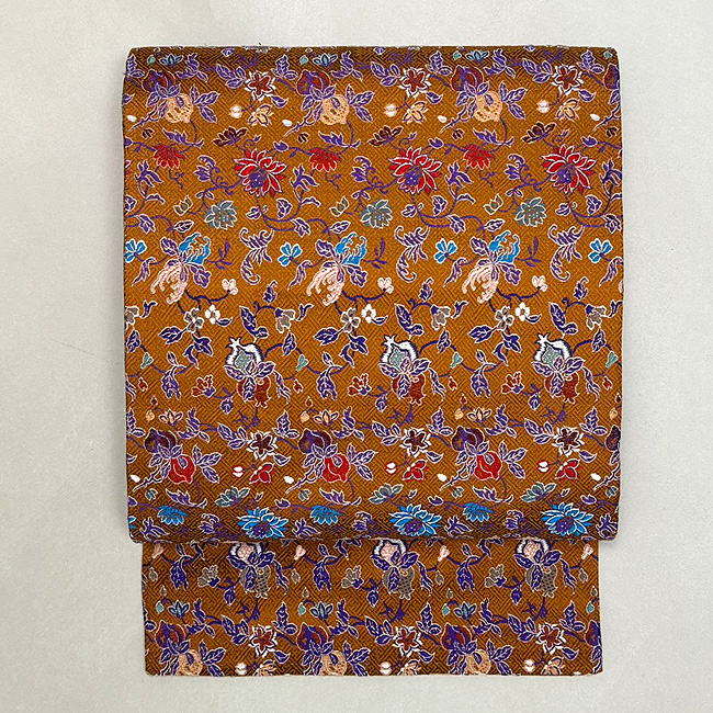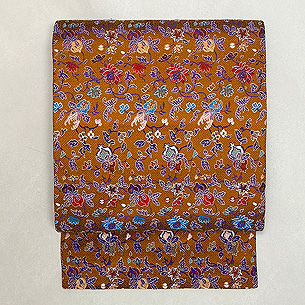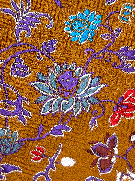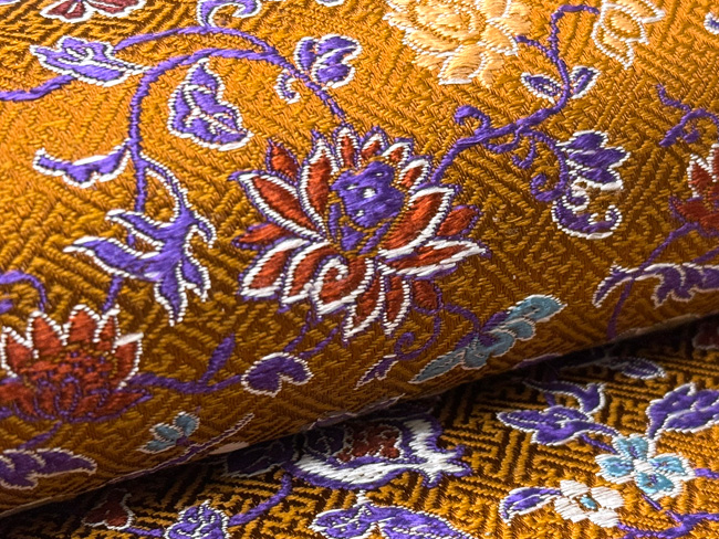 菊にザクロ文の丸帯 帯裏 菊にザクロ文の丸帯 前柄 菊にザクロ文の丸帯 質感・風合