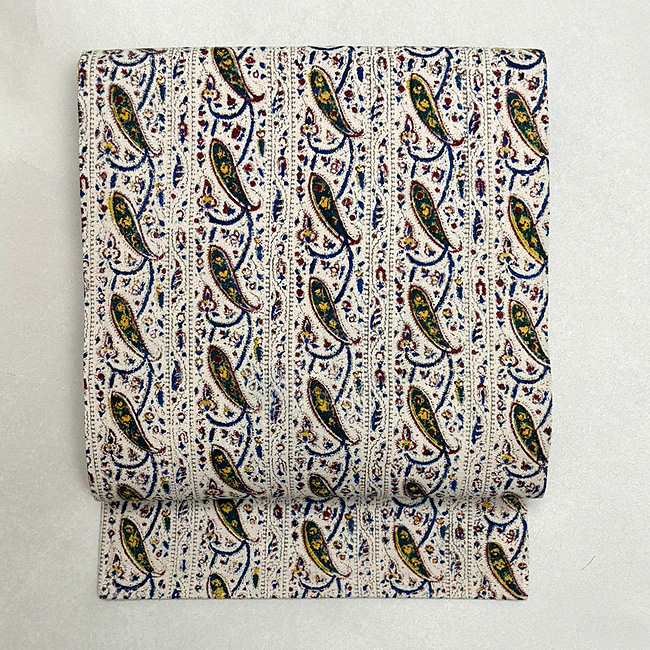 白地ペーズリー文様の更紗名古屋帯 44,000円(税込)帯24-12-42