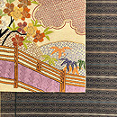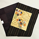 昔の刺繍柄の布が、これも昔の吉野織りの帯にコラージュされています。 センスの詰まったオシャレな名古屋帯になっています。 紬にも、柔らかものにも対応できます。