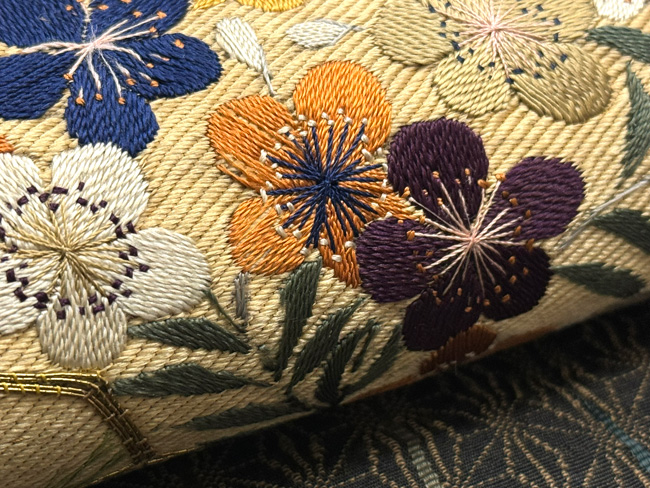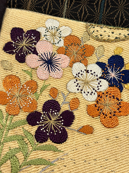 扇面に梅桜文の刺繍名古屋帯 帯25-01-11 ご売約済
