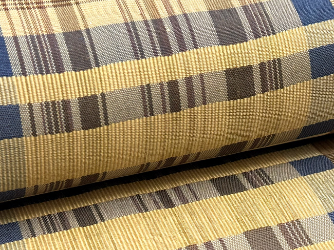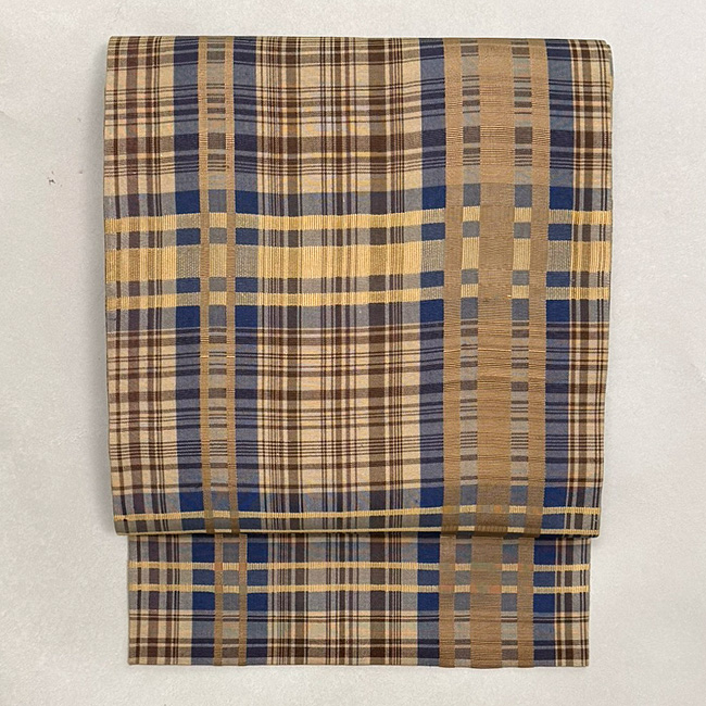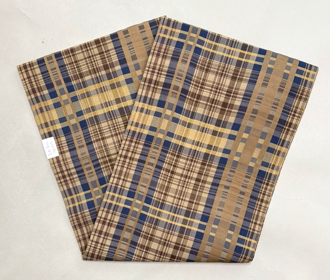 茶系の落ち着いた色合いの吉野格子は、淡い藍色と光沢のある糸が程よいアクセント。