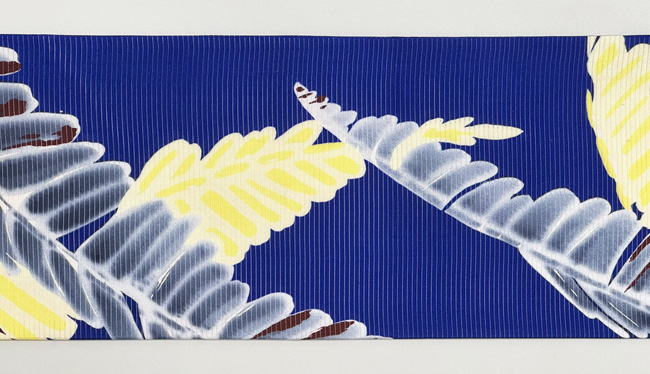 色鮮やかな芭蕉の葉文様染め帯 帯25-06-12 ご売約済 長さ:9尺7寸(約368.6cm) 帯巾:8寸2分(約31.2cm)