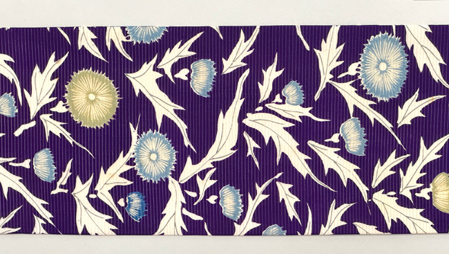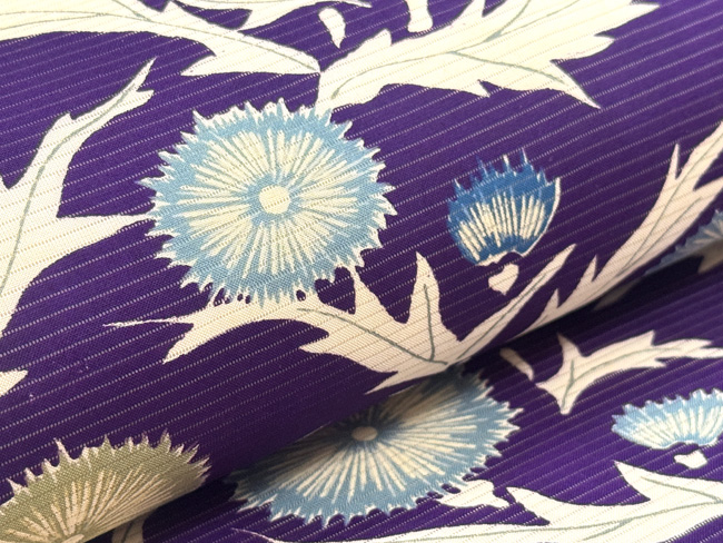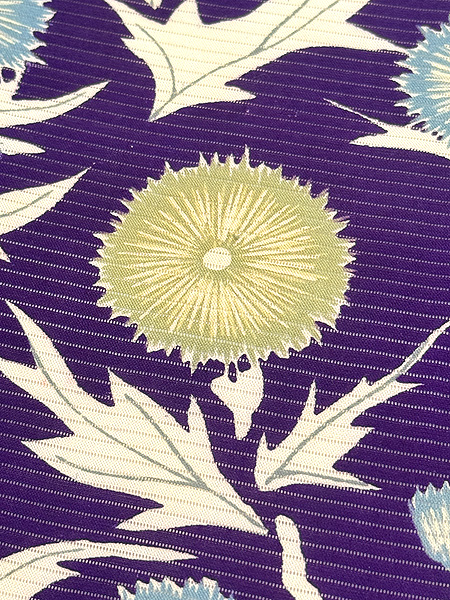 アザミ文様 絽の名古屋帯 帯裏 アザミ文様 絽の名古屋帯 前柄 アザミ文様 絽の名古屋帯 質感・風合