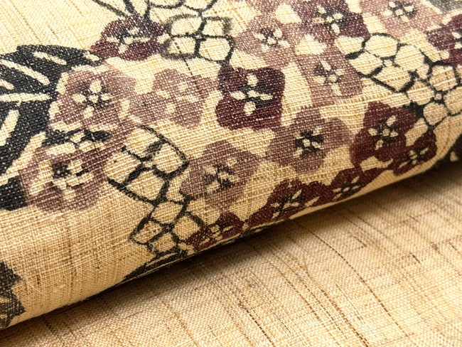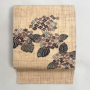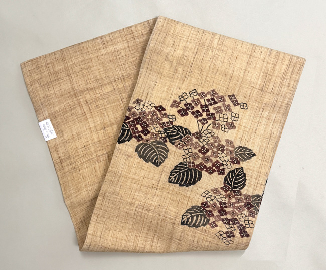 紫陽花文生平麻の名古屋帯 帯25-07-07 ご売約済 長さ:1丈(約380cm) 帯巾:8寸(約30.4cm)