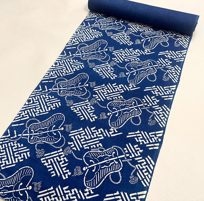 松原孝司作 軍配に紗綾型 木綿名古屋帯 帯裏 松原孝司作 軍配に紗綾型 木綿名古屋帯 前柄 松原孝司作 軍配に紗綾型 木綿名古屋帯 質感・風合