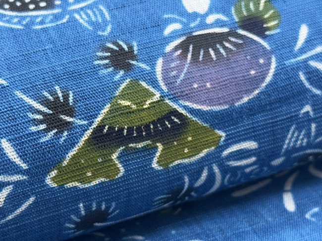 青山みとも製 本紅型木綿名古屋帯 帯裏 青山みとも製 本紅型木綿名古屋帯 前柄 青山みとも製 本紅型木綿名古屋帯 質感・風合