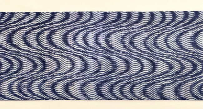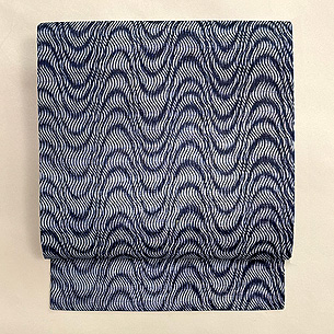 大きなモアレ文様のクールな染帯。 水紋を縦にも緯にも重ねその中にさらにもっともっと小さな水紋も、さりげなく凝っています。