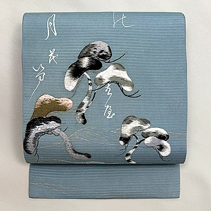 山のふもとの庵に輝く月の光がたっぷりと差し込むとの句を添えて、情景が浮かぶ洒落た帯となりました。