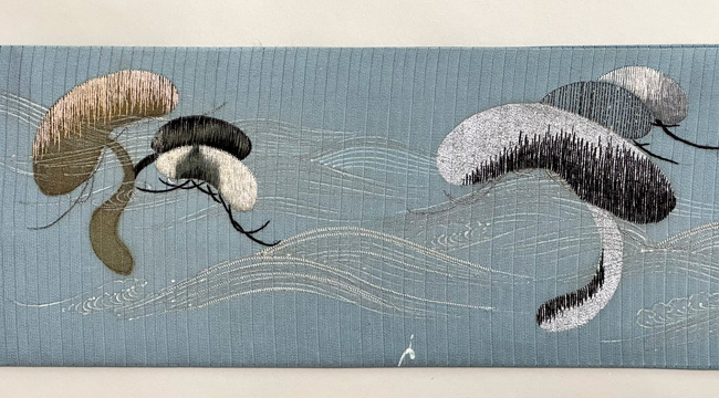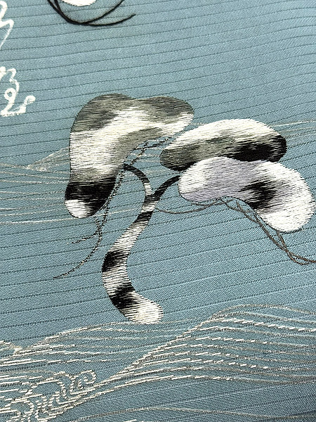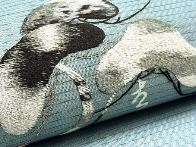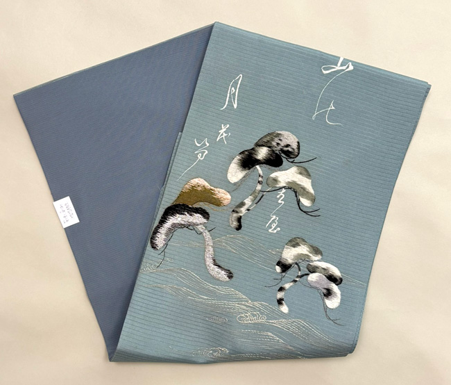 松の刺繍絽名古屋帯 帯裏 松の刺繍絽名古屋帯 前柄 松の刺繍絽名古屋帯 質感・風合