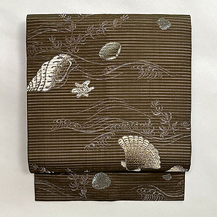 貝と海藻絽織名古屋帯 ご売約済帯25-08-17