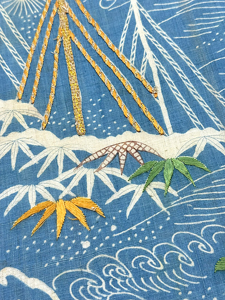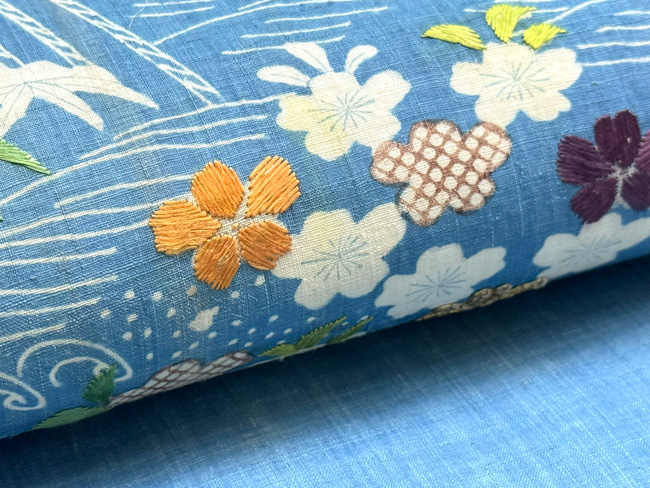 草木染の地色と刺繍は優しい色合い、上品に夏のお出かけ着にお使いください。