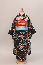![]() 750-6 黒地蝶々に花散らし文様祝い着 55,000円 |