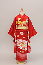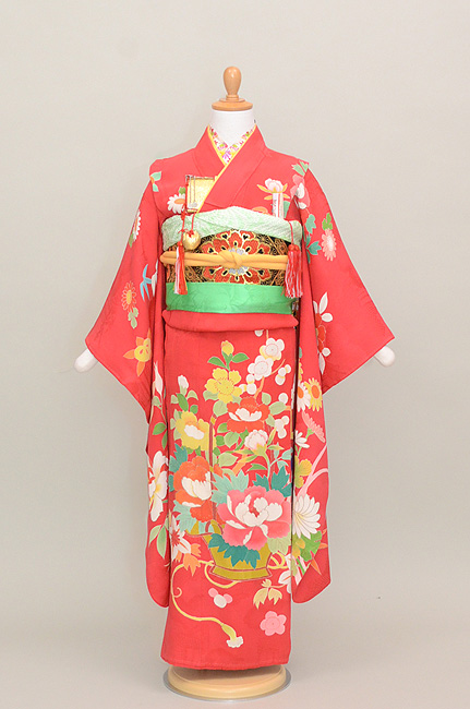 ![]() 750-12 赤無地正絹祝い着に手毬帯 55,000円 |