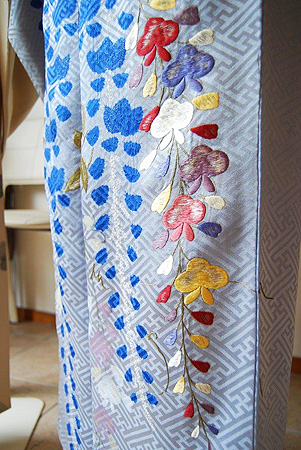 6月限定の組み合わせです。右:枝垂れ藤の図訪問着 一式42000円 → GWフェア期間中35700円