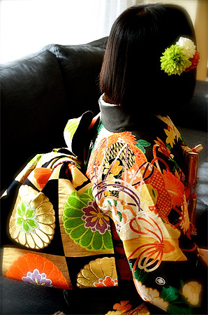 クラシカルな広間に、アンティークの黒振袖、旦那さんの洋装+シルクハットはとても似合って、市長さんからも絶賛されました。