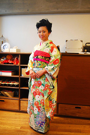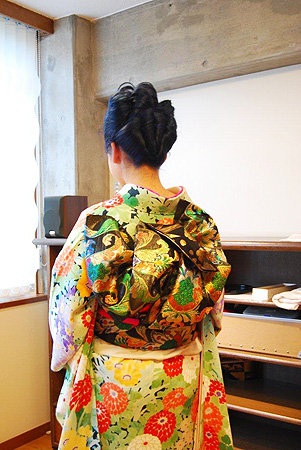 とても複雑!縦ロールに魅了されるヘアセットは行きつけの原宿の美容室にてされ、着付けの後、メイクを完成させるために再度美容室へお戻りになられました。
